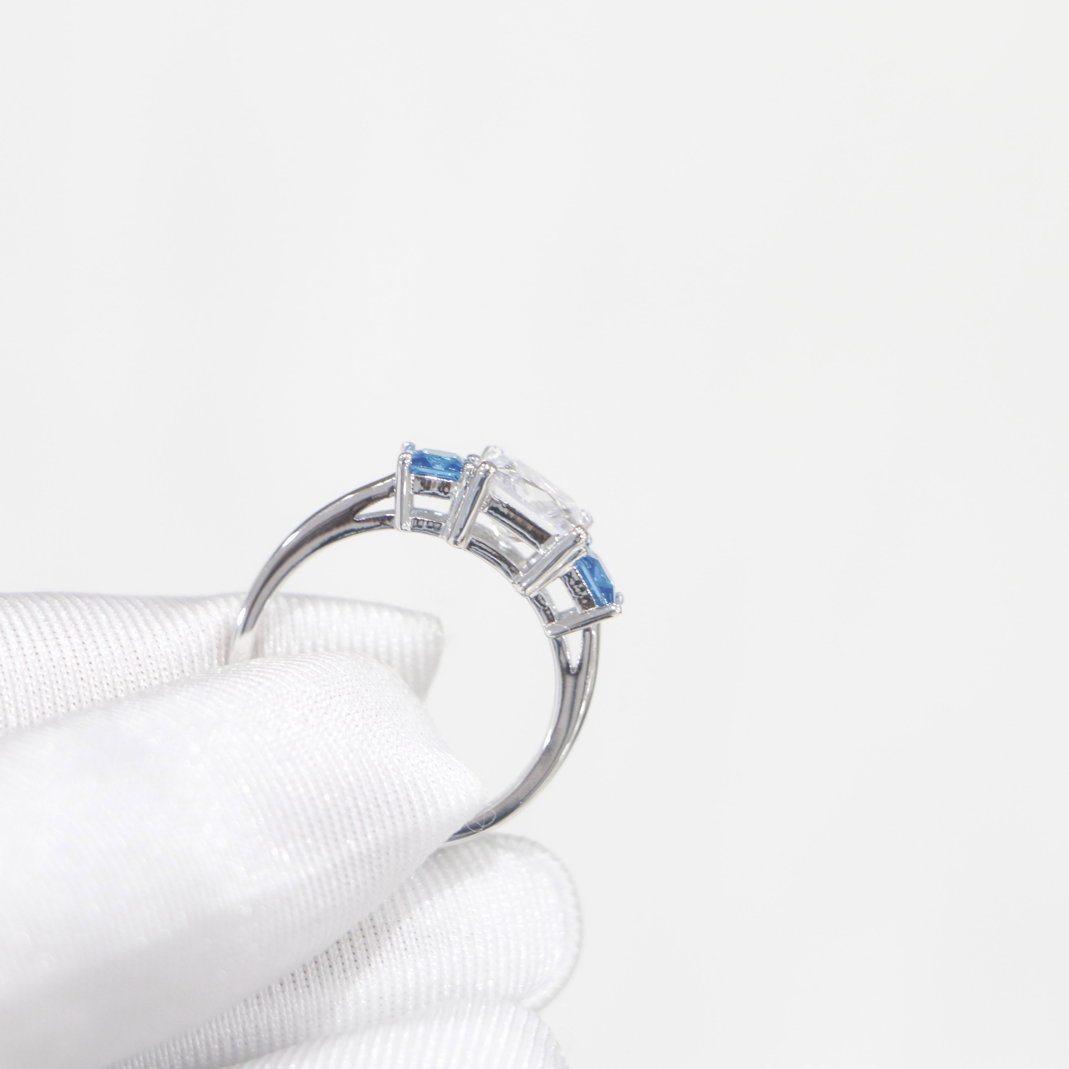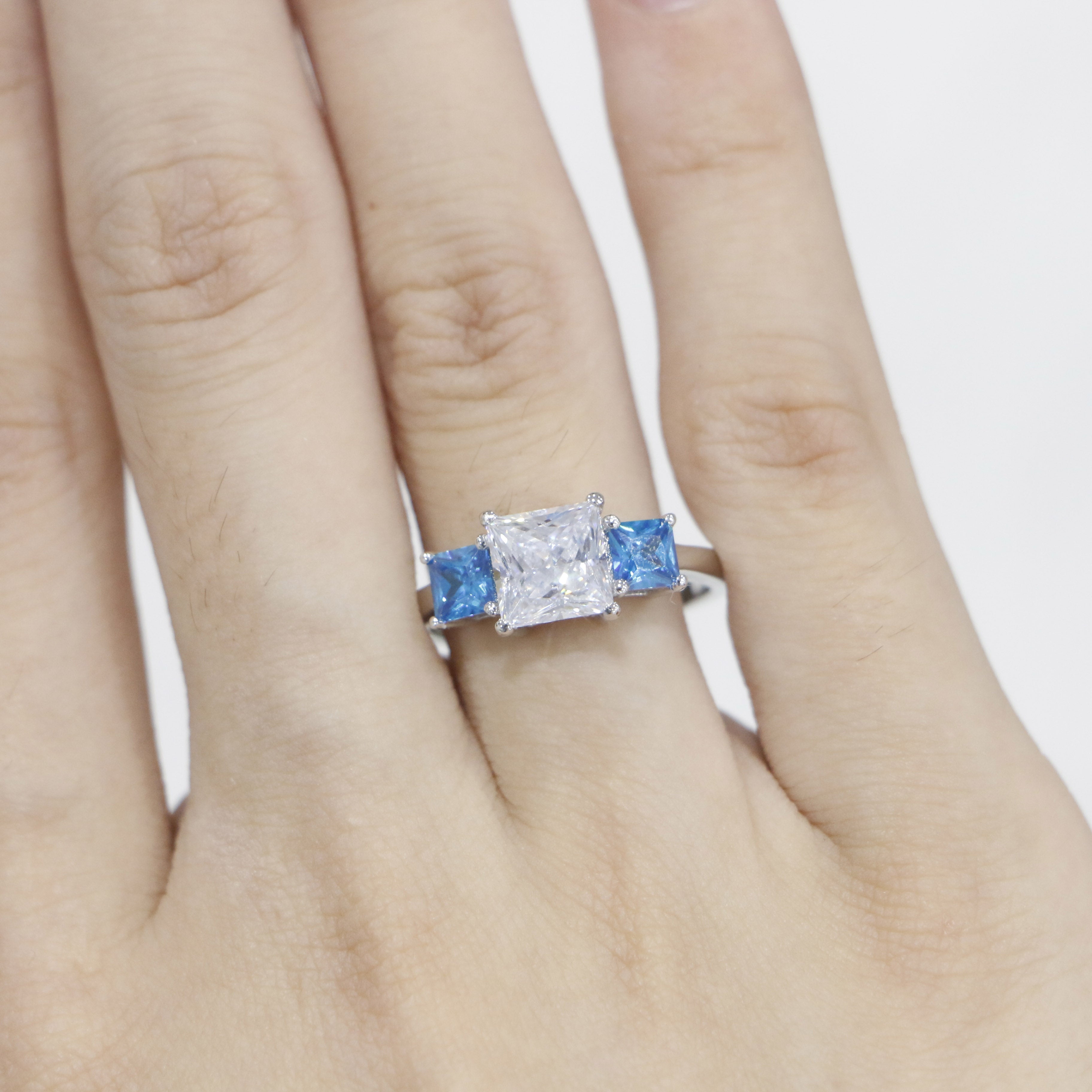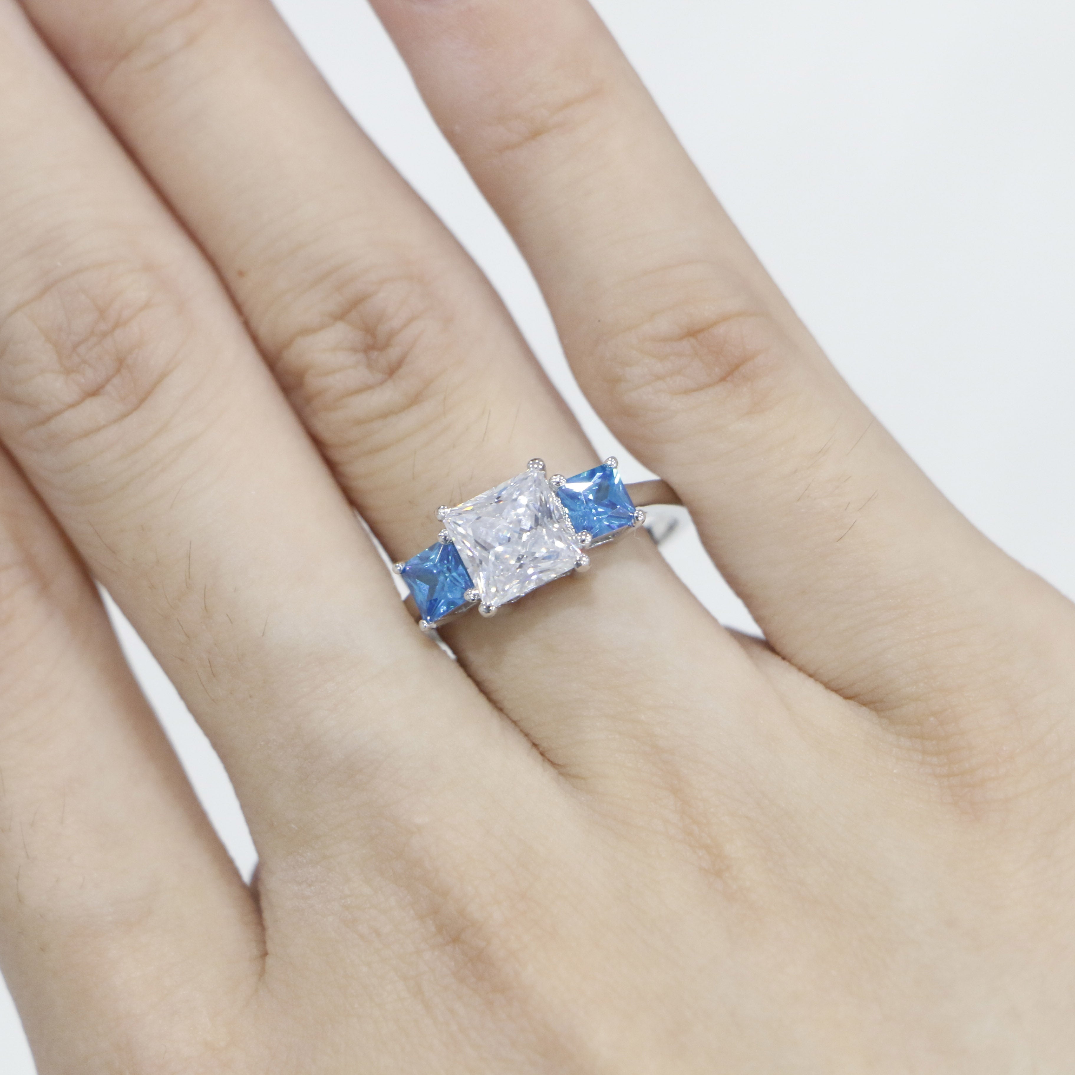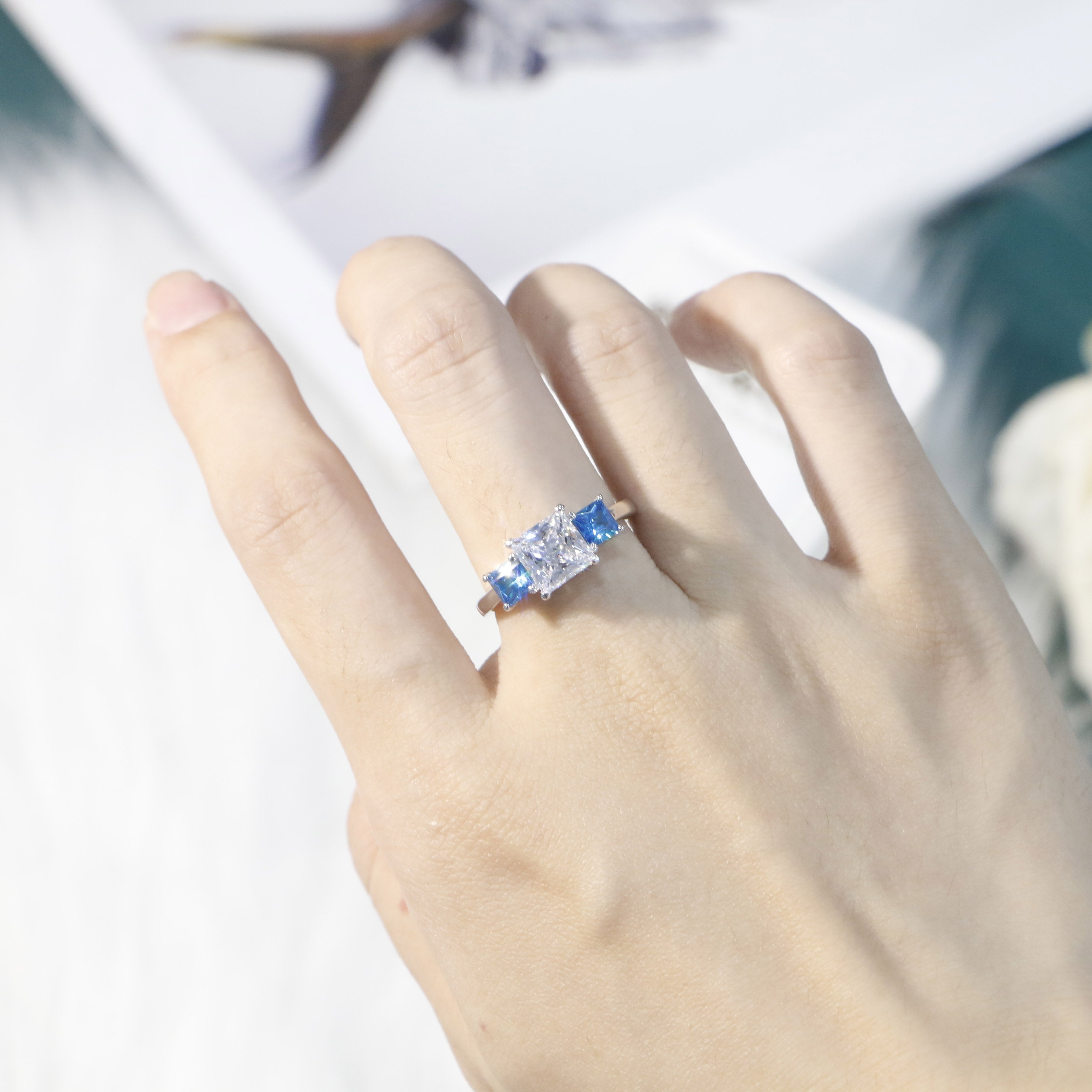 Special three stones design, meaning past, present and future. Two small stones on both sides highlight the light of center stone.