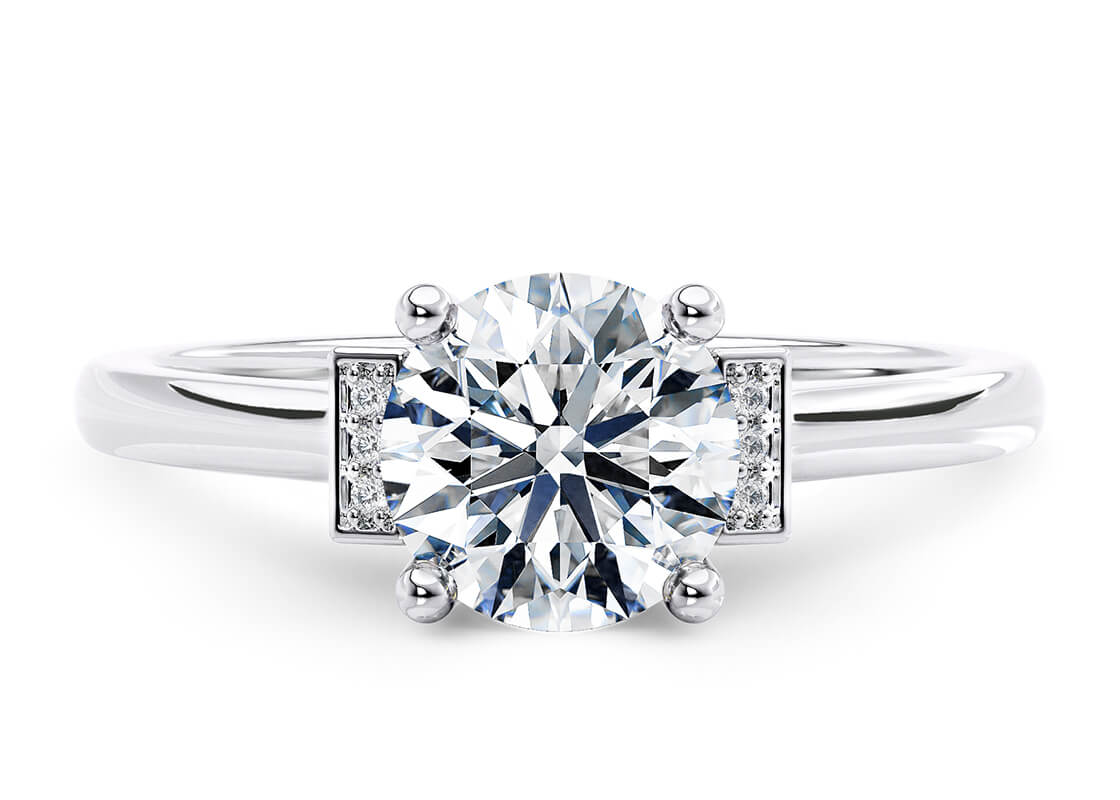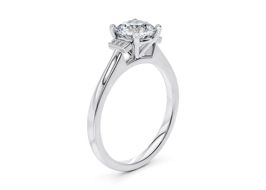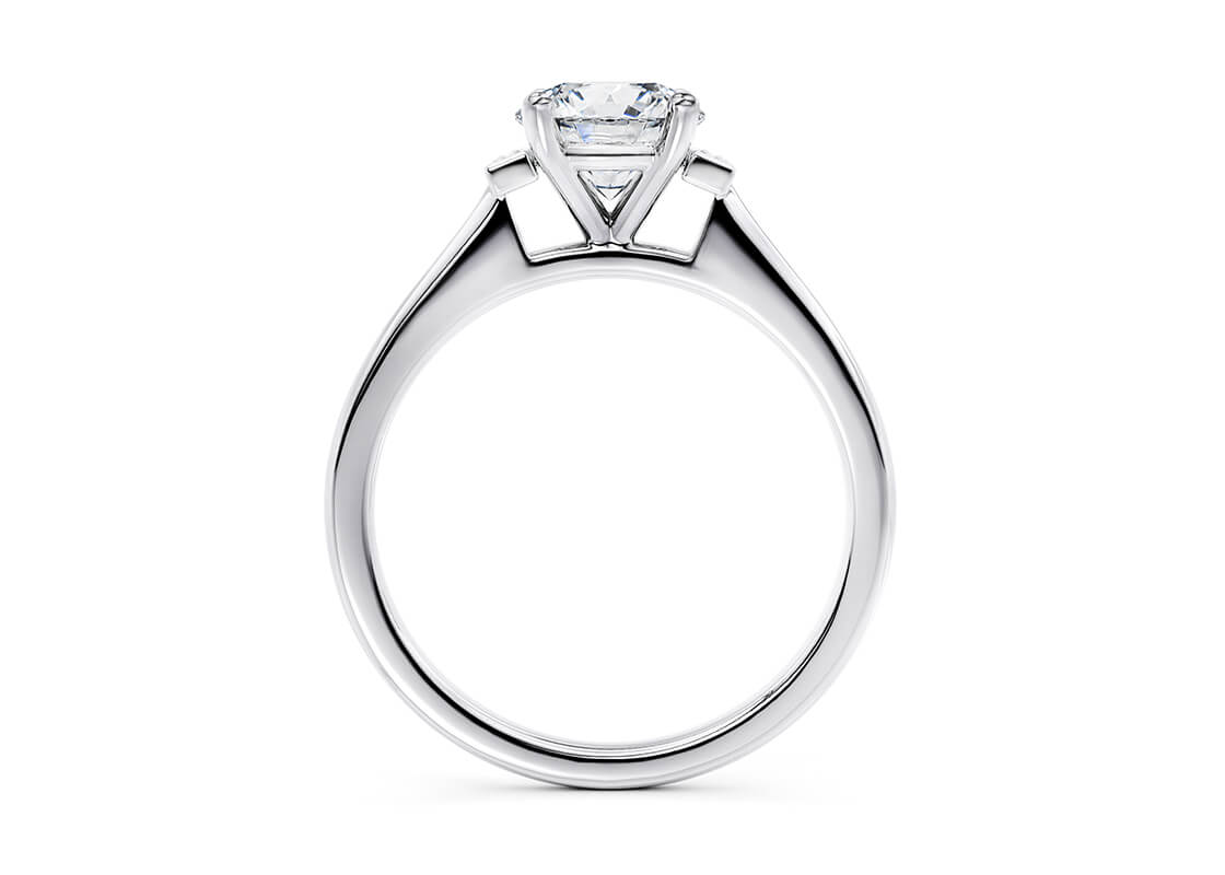 The structural form of the design reflects the strength of everlasting love. Two rectangles set with brilliant stones frame your chosen centre stone, accentuating its sparkle.