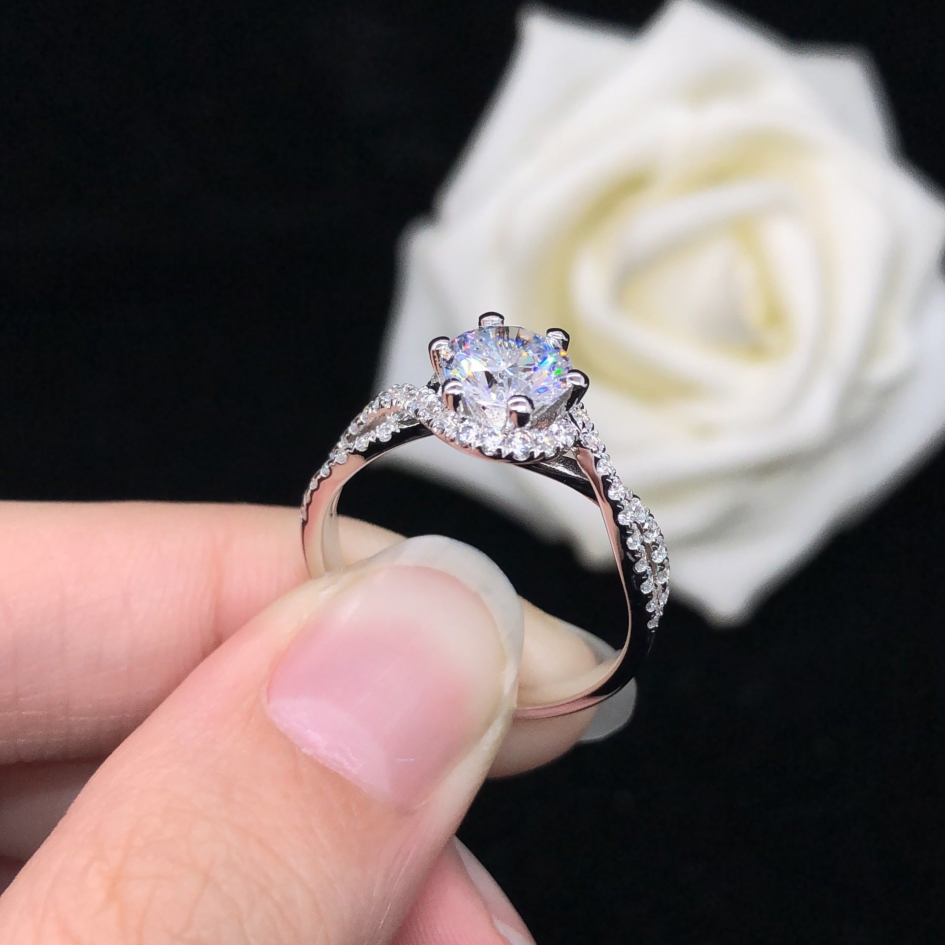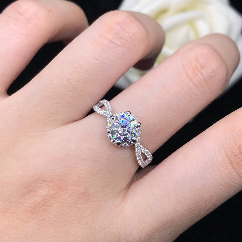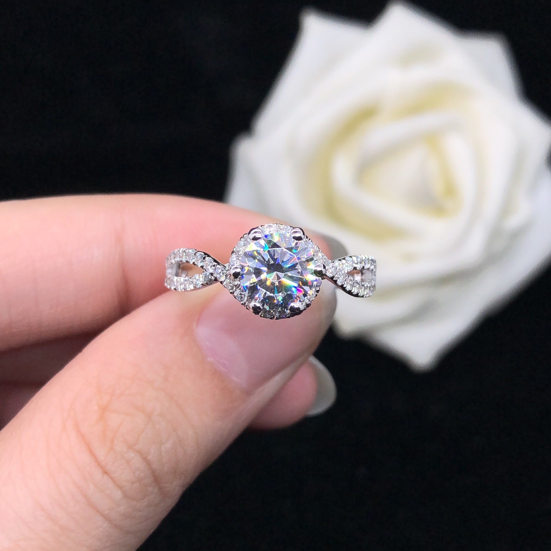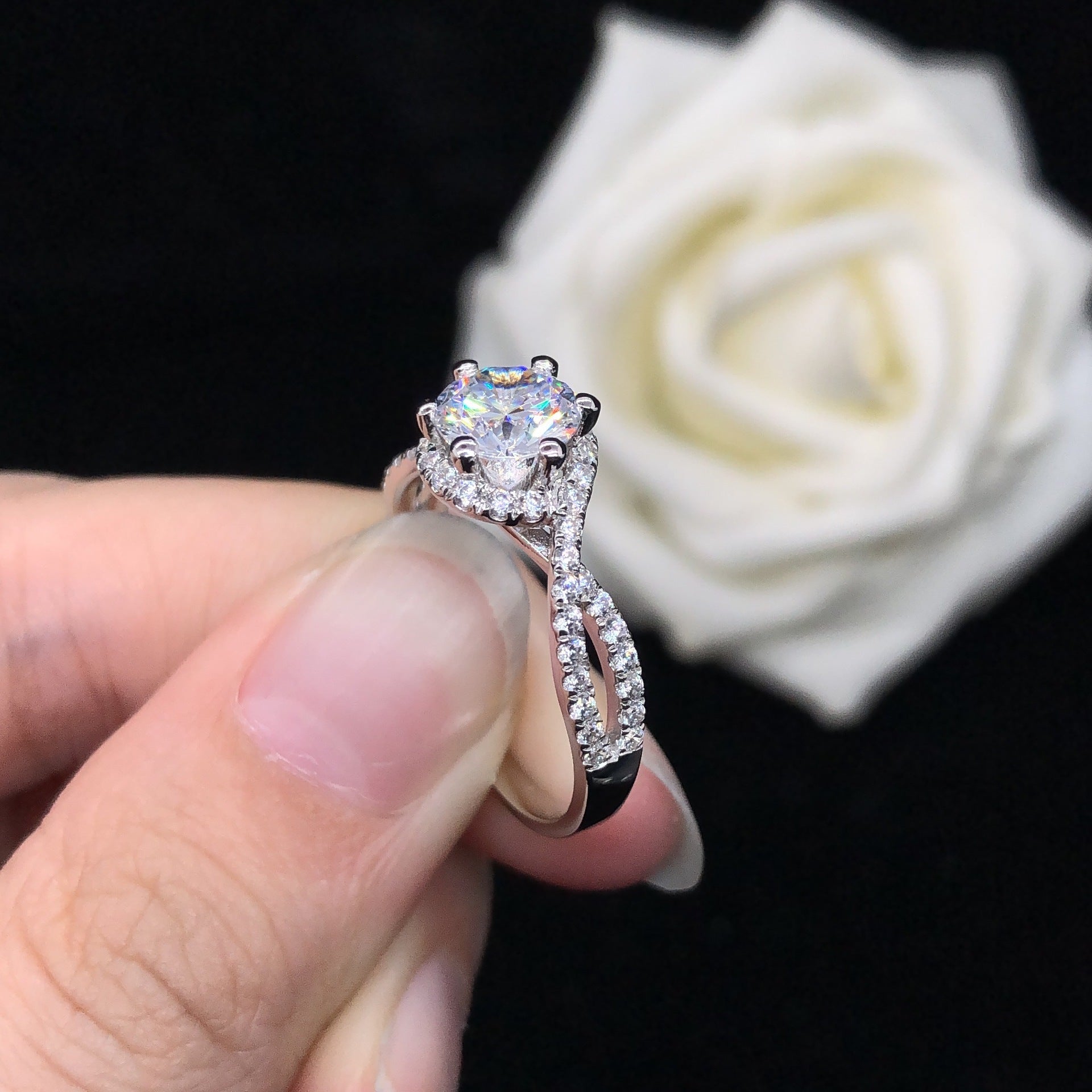 Around the center stone, there is a halo of exquisite small stones to highlight the magnificent bright of the main stone. Twisting arms make it special compare to ordinary designs.