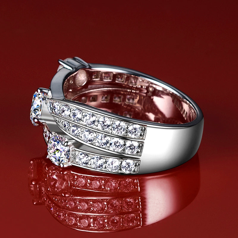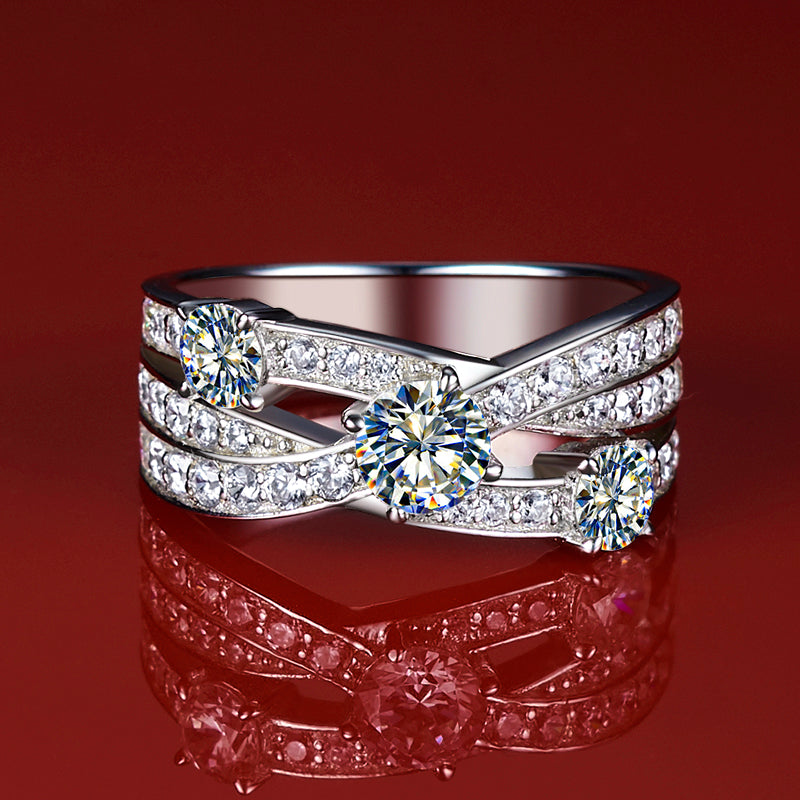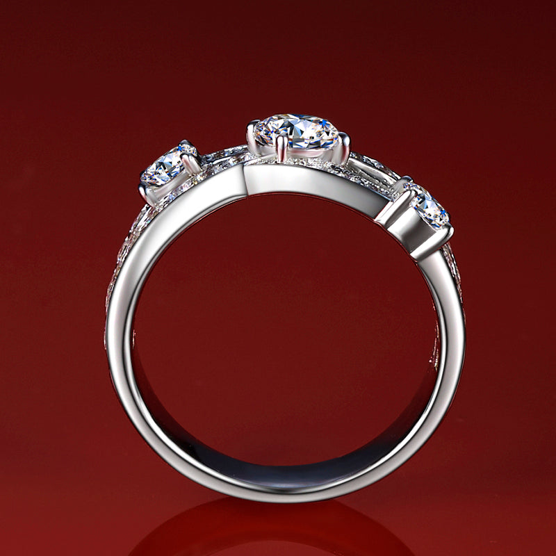 A 0.5ct and two 0.3ct center stones are set on a unique tangled band, make it perfect from every Angle.