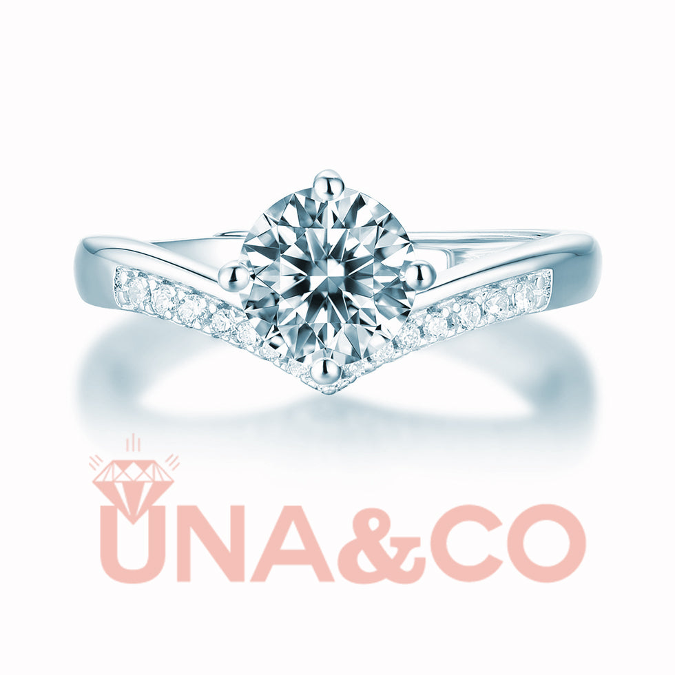 The center stone is set with classic four prong, with the unique curve band, noble and elegant.